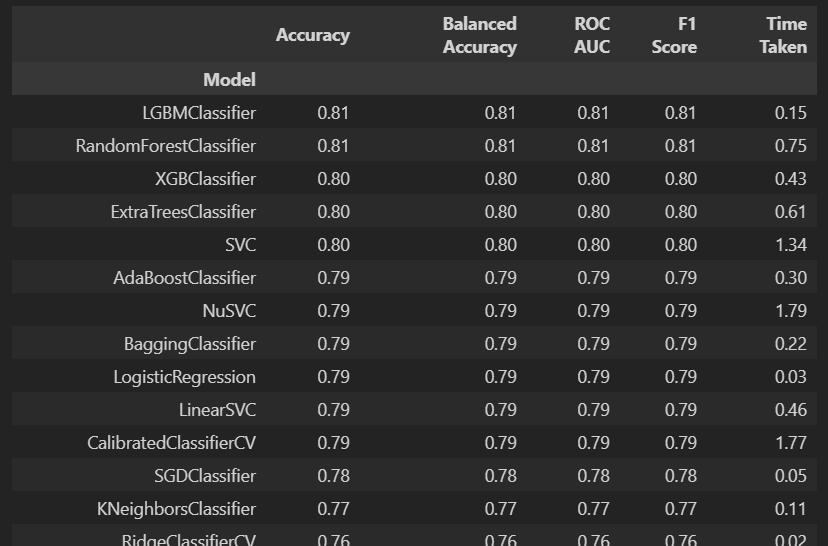 models, predictions = clf.fit(x_train , x_test , y_train , y_test)