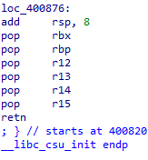 Exploit을 하기 위해서는 loc_400876부분에 있는 pop rbx 부분으로 rip를 지정을 해준다.