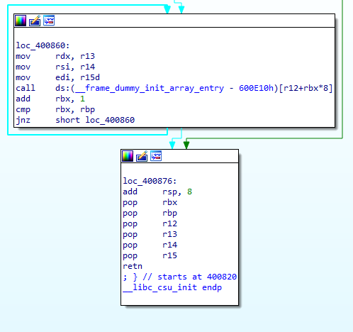 chain이 제대로 되지 않았다.그 이유를 __libc_csu_init의 loc_400876 부분을 보고 깨달았다.